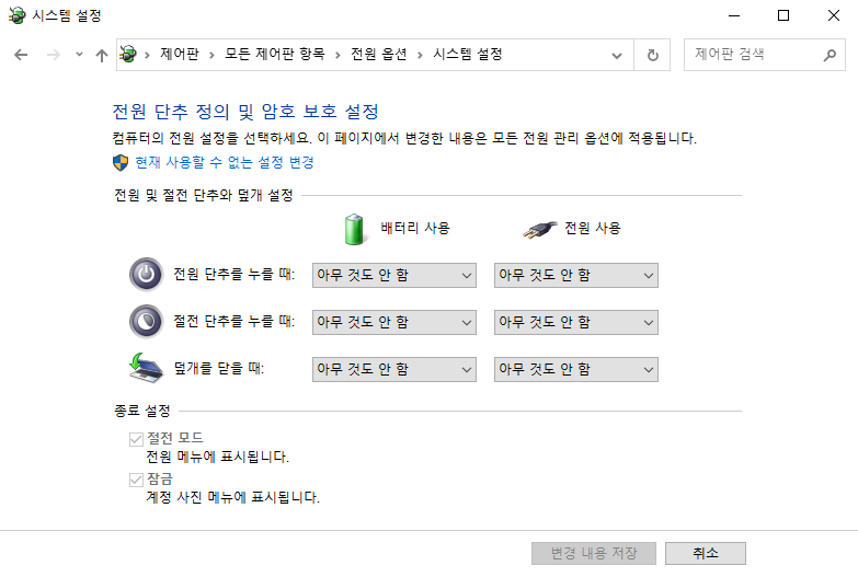 전원버튼을 눌러도 컴퓨터가 종료되지 않도록
