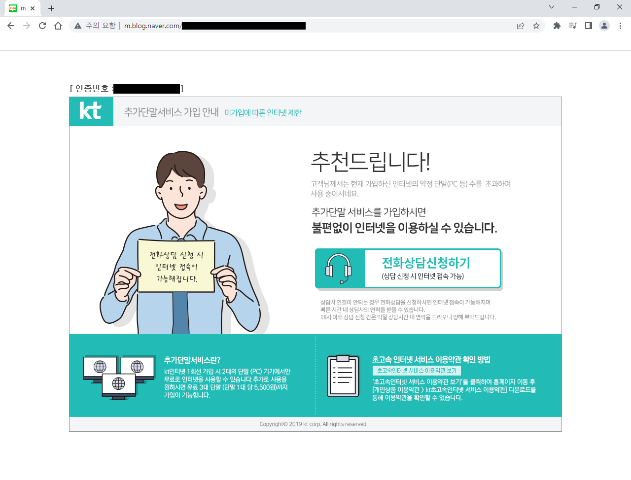 추가단말서비스 가입 안내가 표시되는 것에