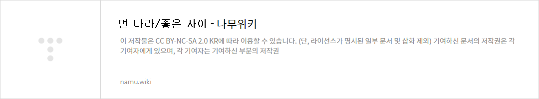이 저작물은 CC BY-NC-SA 2.0 KR에 따라 이용할 수 있습니다. (단, 라이선스가 명시된 일부 문서 및 삽화 제외) 기여하신 문서의 저작권은 각 기여자에게 있으며, 각 기여자는 기여하신 부분의 저작권
