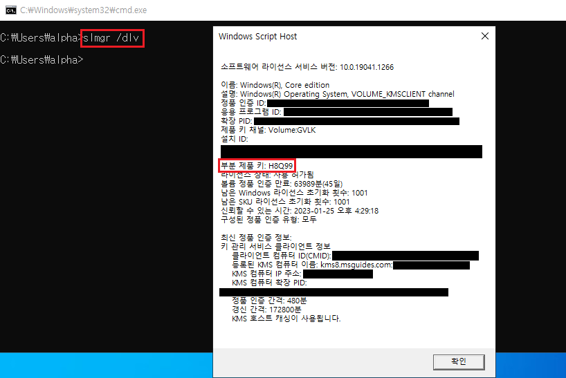 CMD로 정품인증을 할 수 있다.