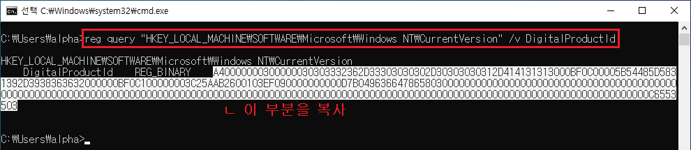 윈도우10에서는 위의 인증키를 이용하여