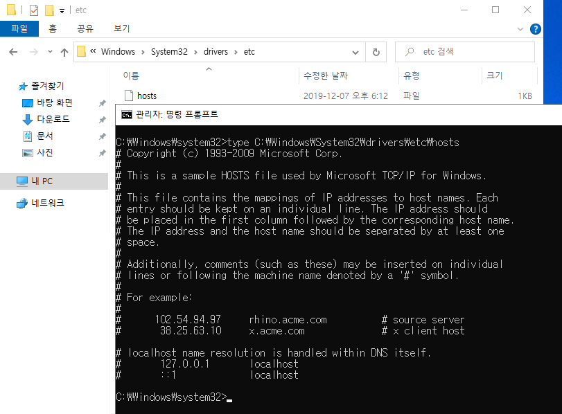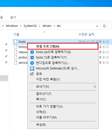 (hosts파일이 존재하는 폴더열기)