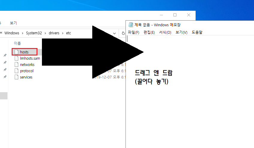 * hosts파일 여는 방법