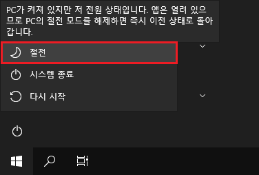 시스템 종료가 아닌, 절전을 누른 경우